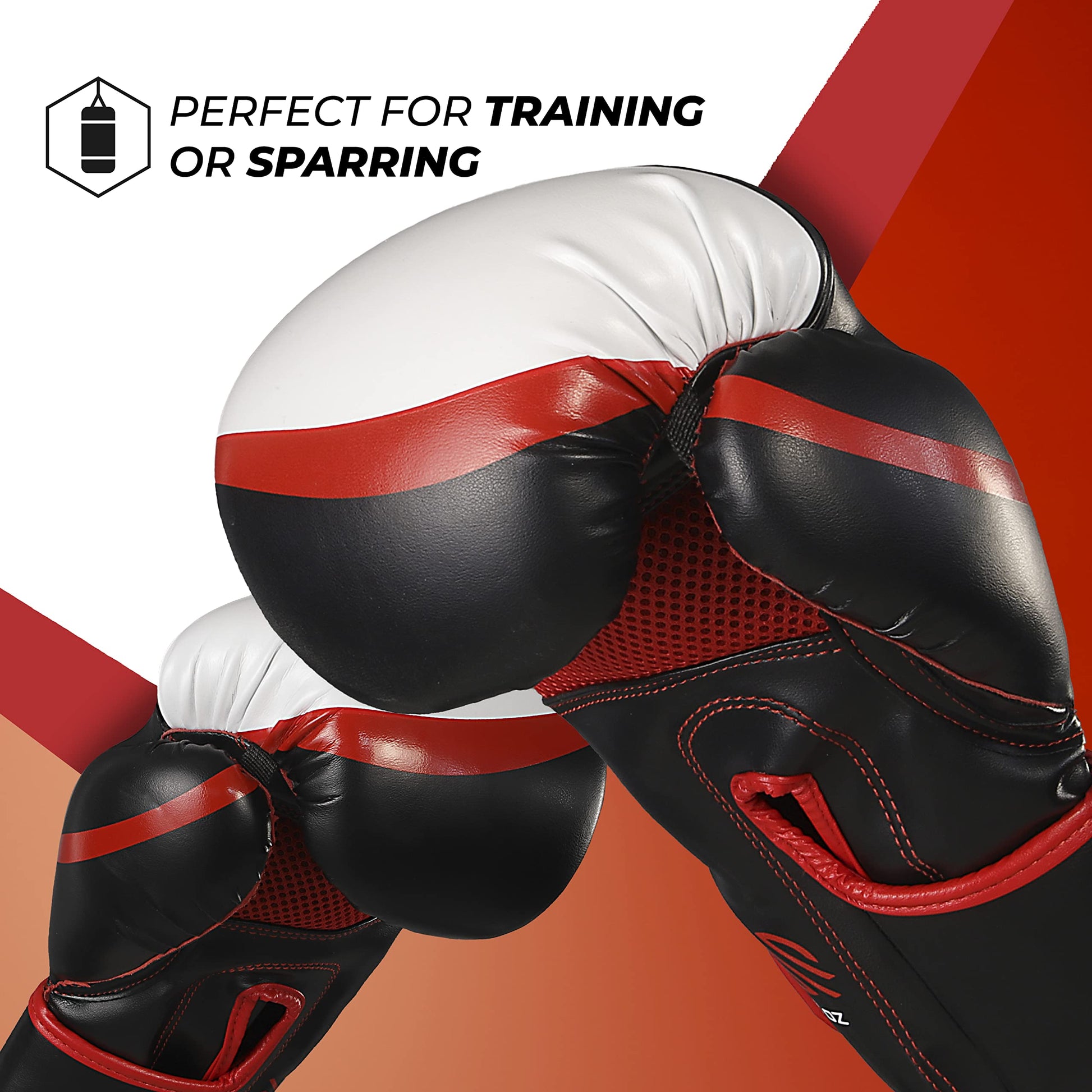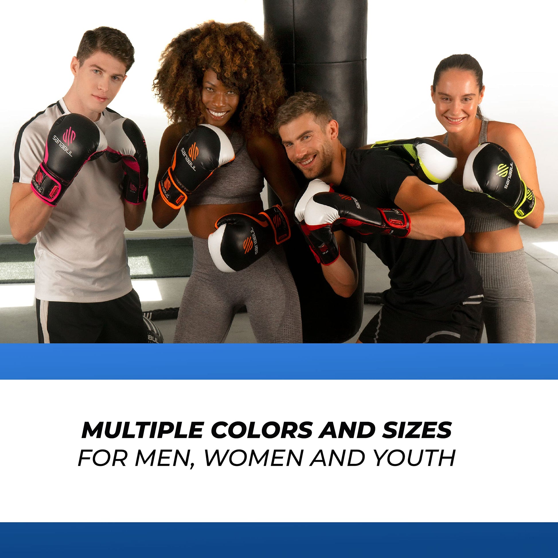 Sanabul Essential Gel Boxing Kickboxing Gloves Performance Engineered Leather construction. High quality and durable material is easier to clean and maintain Gel Impact Protection Foam. Gel infused foam provides superb protection and softness to help prevent injury to your hands while training boxing , cardio kickboxing , muay thai , or MMA (Mixed Martial Arts) Longitudinal Arch Design. Constructed to fit the natural curvature of the hand for proper fist closure while striking Secure Velcro Closure System. Ensures a secure fit for training while making the gloves easy to put on or take off Mesh Palm. Helps keep hands cooler and increases breathability of the gloves General Size Guide: 8-10 oz gloves: Person under 100lbs (common size for children) 10-12 oz gloves: Person between 100lbs-125lbs (common sizes for women) 12-14 oz gloves: Person between 125lbs-150lbs 14-16 oz gloves: Person between 150lbs-180lbs 16 oz gloves: Person over 180lbs Click the ADD TO CART button above and start training with Sanabul products. Satisfaction is guaranteed or you can return your unused product for a full refund!