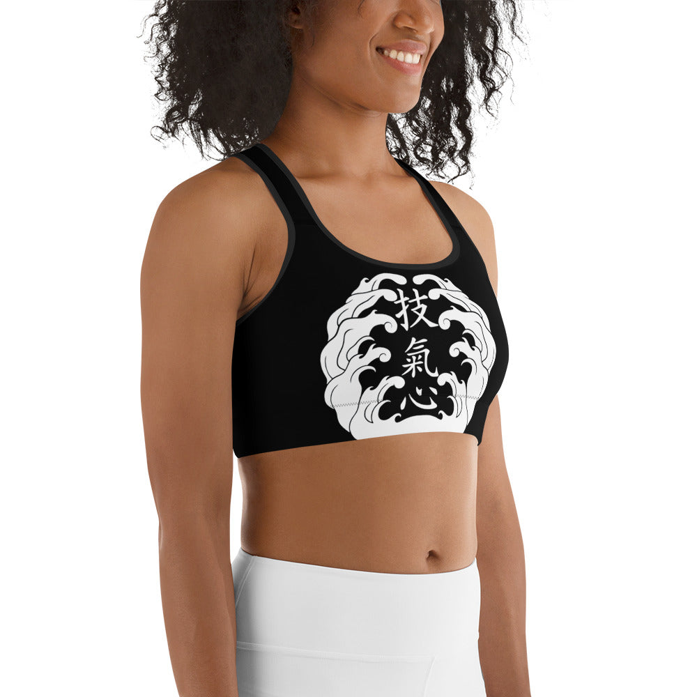 This gorgeous sports bra is made from moisture-wicking material that stays dry during low and medium intensity workouts. The bra has support material in the shoulder straps, double layer front, and a wide elastic band to ensure constant support.